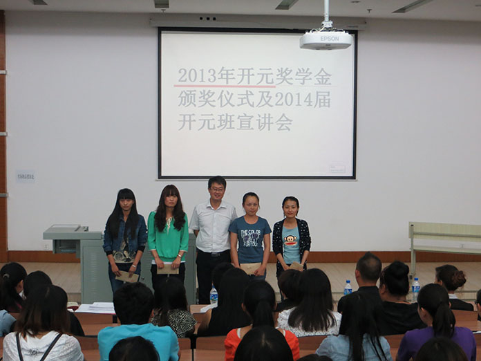同時,集團還在學院設立了開元獎學金,該獎學金并不僅僅針對開元班的學生,而是面向全校14個院系的8000多名學生。6月,昆明冶專教務處通過“公平、公正、公開”的遴選,最終確定樊慧、田莎莎等14名學生分別獲得2013年度的一、二等獎學金,其中樊慧、阮嬌、費宇均來自于開元班。