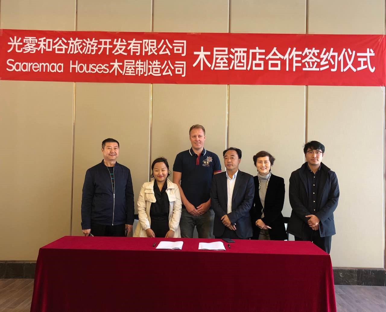 2019年4月4日上午,開元集團與Saaremaa Houses公司的木屋酒店合作簽約儀式在“光霧和谷”項目營銷中心順利舉行。開元集團董事長趙思儉、副董事長趙文承、副總裁范力出席本次簽約儀式。